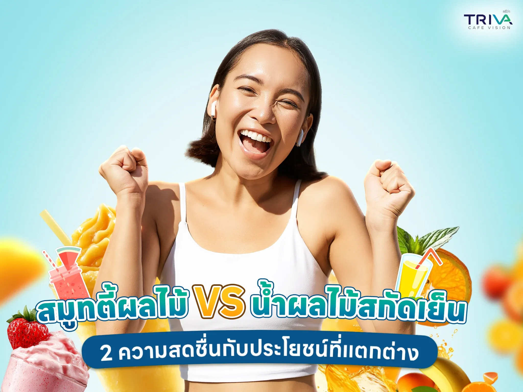 "สมูทตี้ผลไม้" และ "น้ำผลไม้สกัดเย็น" คือเครื่องดื่มที่เกิดจากการแปรรูปผักผลไม้เพื่อให้ดื่มง่ายขึ้น อีกทั้งผักผลไม้ยังเป็นแหล่งรวมวิตามินและสารอาหารที่มีประโยชน์ต่อร่างกาย ไม่ว่าจะเสริมสร้างภูมิคุ้มกัน ผิวพรรณสดใส ลดโอกาสป่วยได้ เป็นต้น